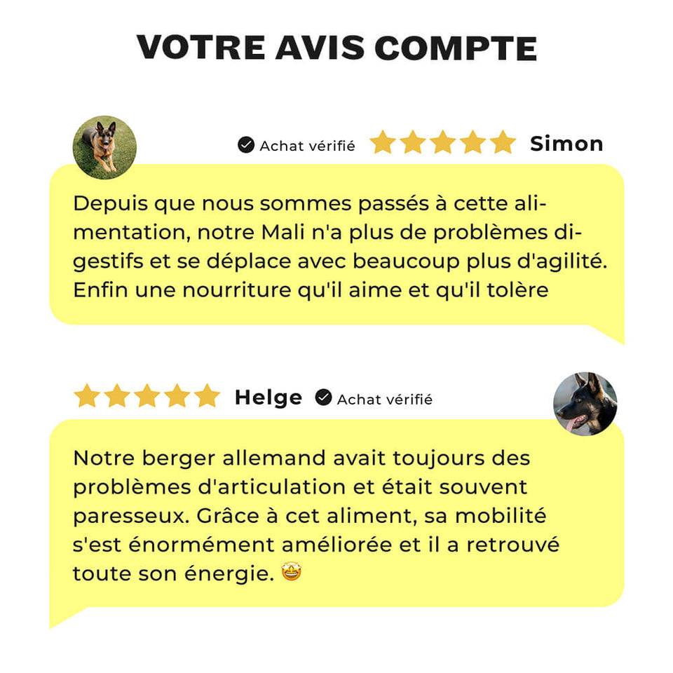 Oui, c'est pour cela que nous avons créé notre garantie satisfait ou remboursé pendant 30 jours. Si la nourriture ne vous convient pas ou ne convient pas à votre compagnon à quatre pattes, vous serez remboursé sans conditions. Pour cela, il vous suffit de contacter notre service client.
