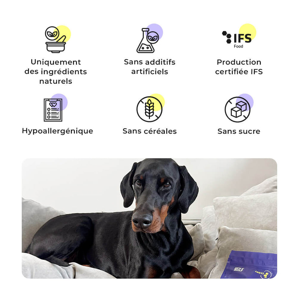 Perfekt ergänzt! Unsere Big Buddies Snacks sind die ideale Ergänzung zu unserem Big Buddies Futterportfolio. Mit 88,5% Rind als einzige Proteinquelle sind sie besonders schmackhaft und gut verträglich. Ob beim Training oder als kleine Belohnung zwischendurch – die getreidefreien Snacks passen perfekt in den Alltag deines Molossers.