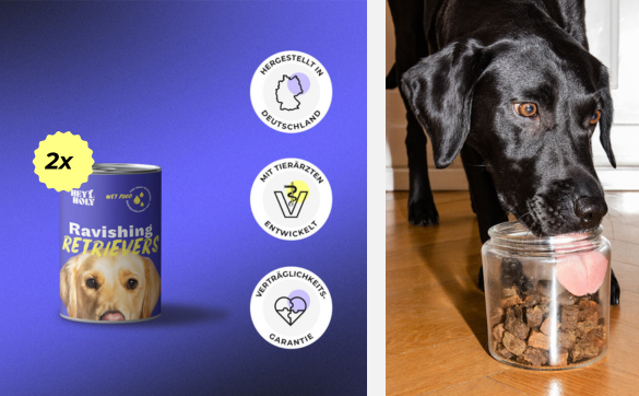 "Unser Labradormix Ole hatte nach seiner Ankunft in Deutschland ständig mit Durchfall und schlechtem Fell zu kämpfen, und war noch dazu sehr dünn. Wir haben vieles ausprobiert, aber erst mit HEY HOLY's Ravishing Retrievers Futter kamen die echten Verbesserungen: Sein Durchfall verschwand, sein Fell wurde glänzend, und ihm ging es sichtbar besser. Dank des Futterrechners auf der Website haben wir auch seine Figur gut im Griff."
