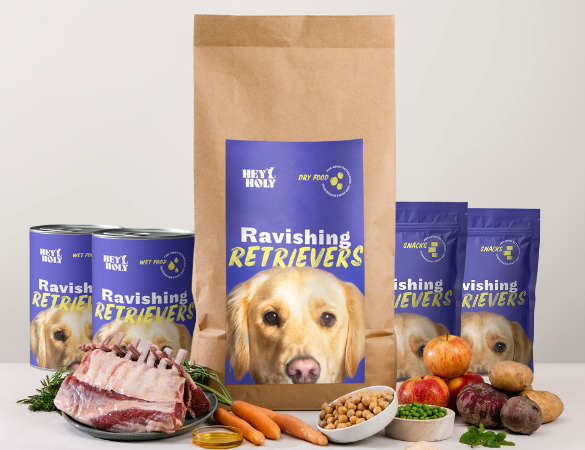 HEY HOLY Ravishing Retrievers Trockenfutter mit Abbildung der Kibbles